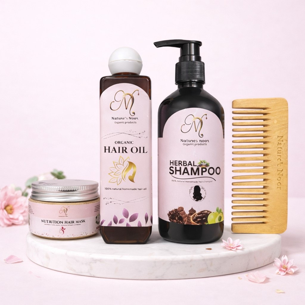 • Nature’s Noor Organic Hair Oil (200ml) for deep nourishment and stronger roots